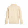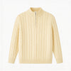 A cable knit quarter-zip sweater with a clean, structured silhouette and a soft finish. Made from a cotton blend, it features a classic cable texture and a half-zip collar. The knit offers natural stretch for comfortable wear and works well for layering.
