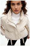 Designed for everyday outerwear use, this women’s quilted jacket features a relaxed silhouette with a distinctive wave-pattern quilted surface. The stand collar and full front closure create a clean, contemporary look, while the overall shape allows for comfortable layering and easy daily wear. Suitable for casual outfits and modern off-duty styling.